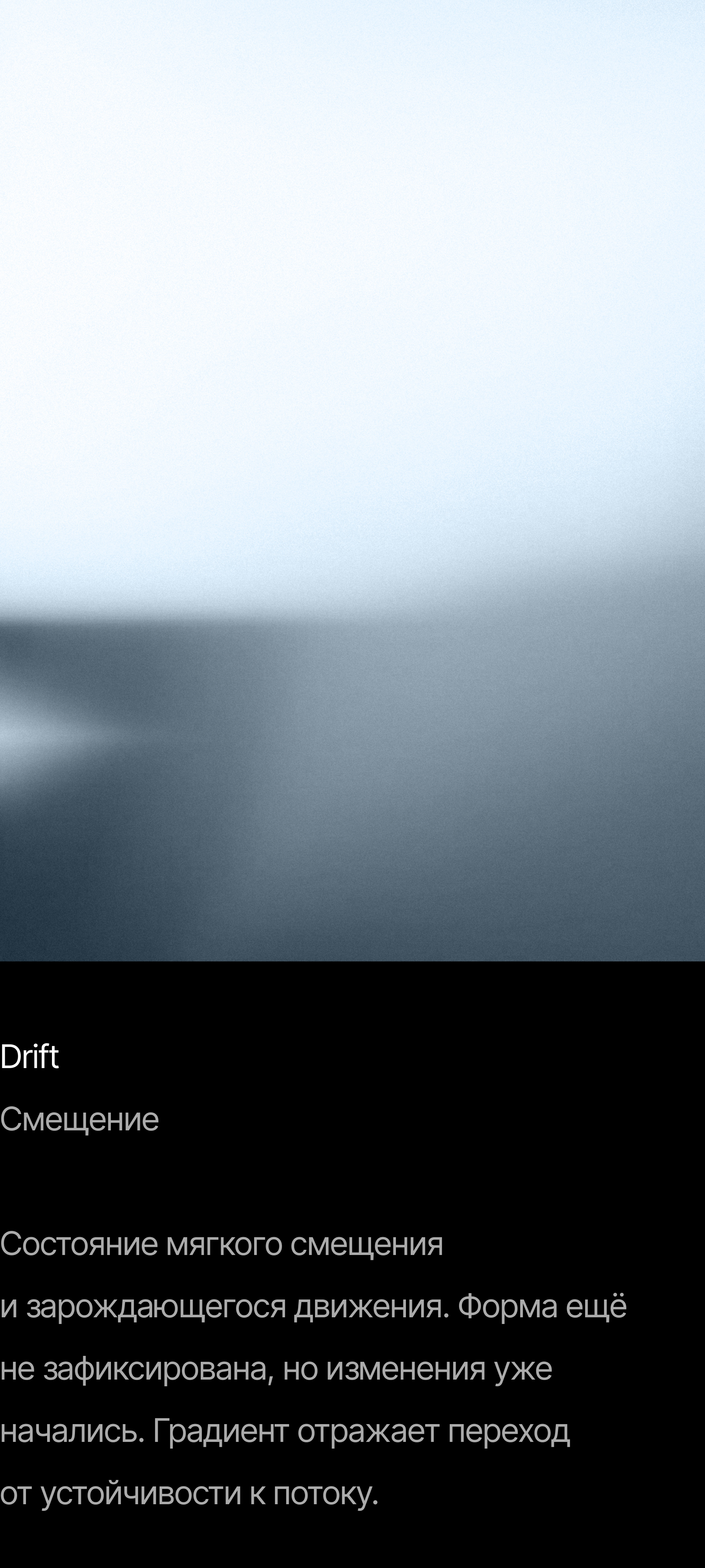 В основе айдентики — метафора воды как состояния и как формы. Её текучесть, способность к отражению и постоянному изменению легли в основу пластики. Градиенты, свет и мягкие переходы формируют ощущение глубины и движения, создавая среду, а не статичный образ.